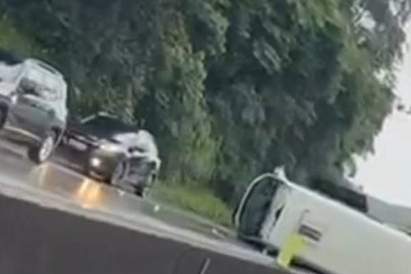 Ônibus tomba na BR-101 em Biguaçu e trânsito fica lento 🚨